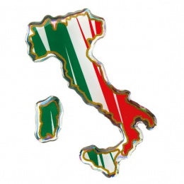 3D obrys Taliansko v talianskej trikolóre, plastická s rozmermi 35 x 66mm. Samolepka je ošetrená priehľadnou živicou s UV ochranným filtrom znemožňujúci jej vyblednutie. Vynikajúca priľnavosť a odolnosť.