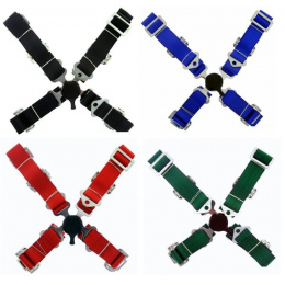 - šírka pásu 50 mm, uchytenie na centrálnu matku tak ako je v motoršporte, farba čierna, červená, modrá a zelená
