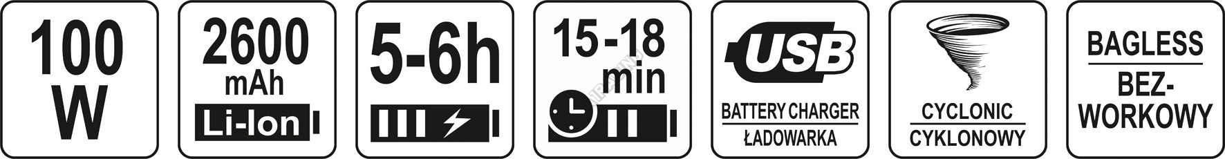Vysoký výkon 100 W a vakuum (sací výkon) 5,5 kPa (5500 Pa) - jeden z nejvyšších sacích výkonů na trhu, zejména u akumulátorového vysavače. Mnoho výrobců tuto hodnotu neuvádí, aby ji skrylo, a je to nejdůležitější parametr fungování zařízení. V kombinaci s kartáčem TURBO poskytuje vynikající výsledky.