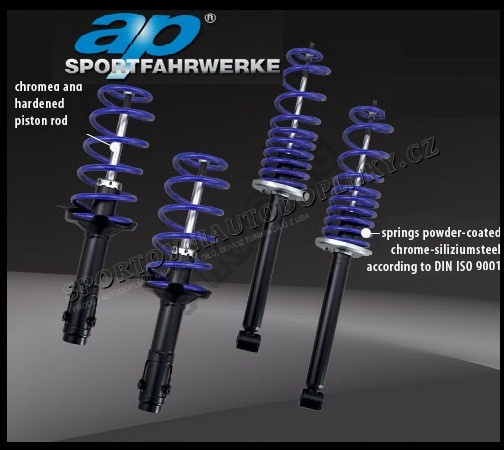 Kompletní sportovní podvozky ( 4 tlumiče a pružiny) německého výrobce ap Sportfahrwerke, která je součástí německé firmy KW AUtomotive pod kterou spadají také podvozkové díly firem Weitec a KW a také vertikální dveře LSD, tak že kvalita i maximální funkčnost je samozřejmností. Charakteristika kompletních podvozků nabízí sportovní požitek z jízdy a zároveň vyšší bezpečnost. Všechny tyto pevné kompletní podvozky mají schválení evropskou zkušebnou TÜV.