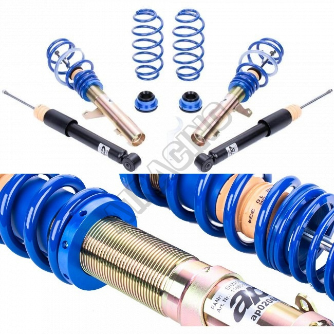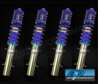 - tyto výškově stavitelné podvozky od německého výrobce ap Sportfahrwerke patřící do skupiny KW Automotive nabizí velmi dobrou kvalitu za příznivou cenu. Charakteristika kompletních podvozků nabízí sportovní požitek z jízdy a zároveň vyšší bezpečnost. Všechny tyto kompletní podvozky mají schválení evropskou zkušebnou TÜV.