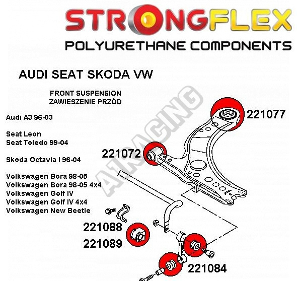 Audi A3 1996-02 StrongFlex sestava silentbloků jen pro přední nápravu 10 ks obsahuje: