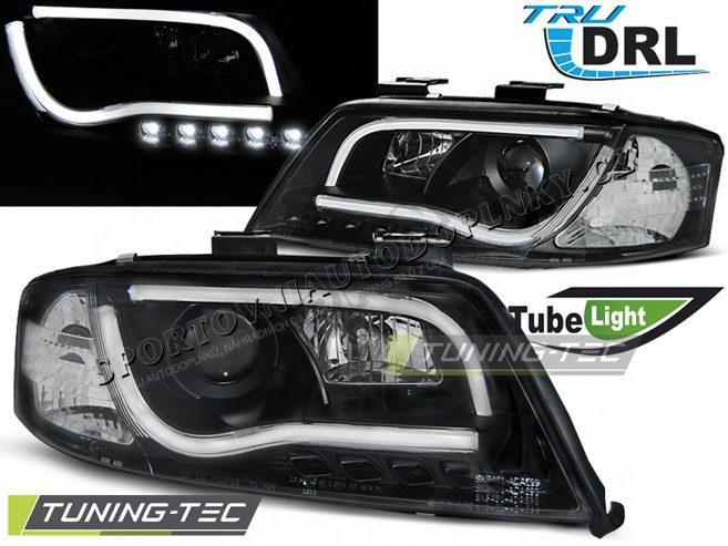 Audi A6 05.1997-05.2001 predné číre svetlá Led Tube Lights TRU DRL black (LPAUB7) Světla mají homolo