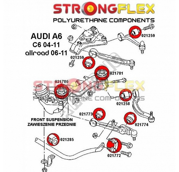 0recenzia produktuAudi Allroad 2004-11 Strongflex zostava silentblokov len pre prednú nápravu 16 ks