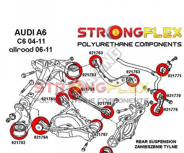 Audi Allroad 2004-11 StrongFlex Sport sestava silentbloků jen pro zadní nápravu 20/22 ks obsahuje: