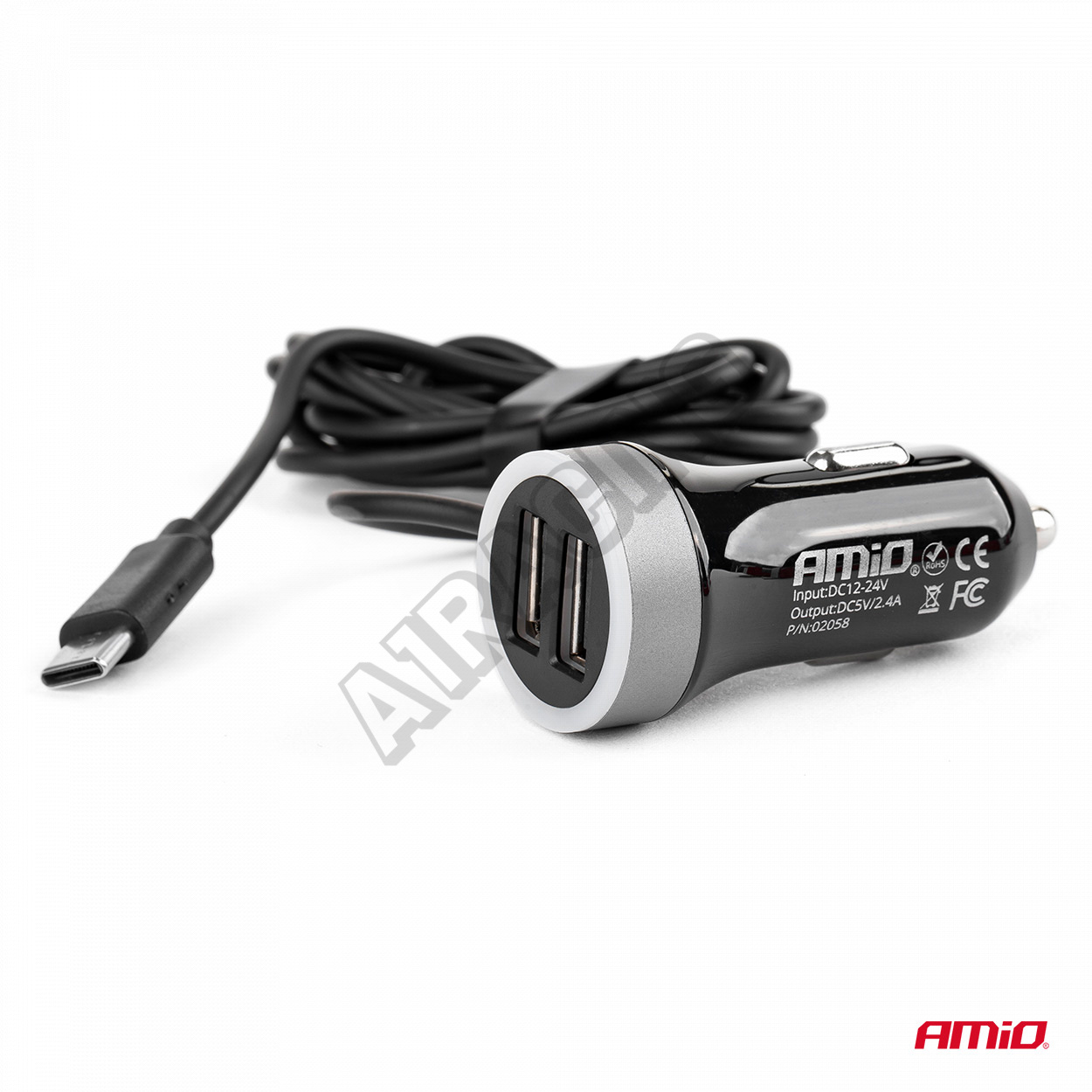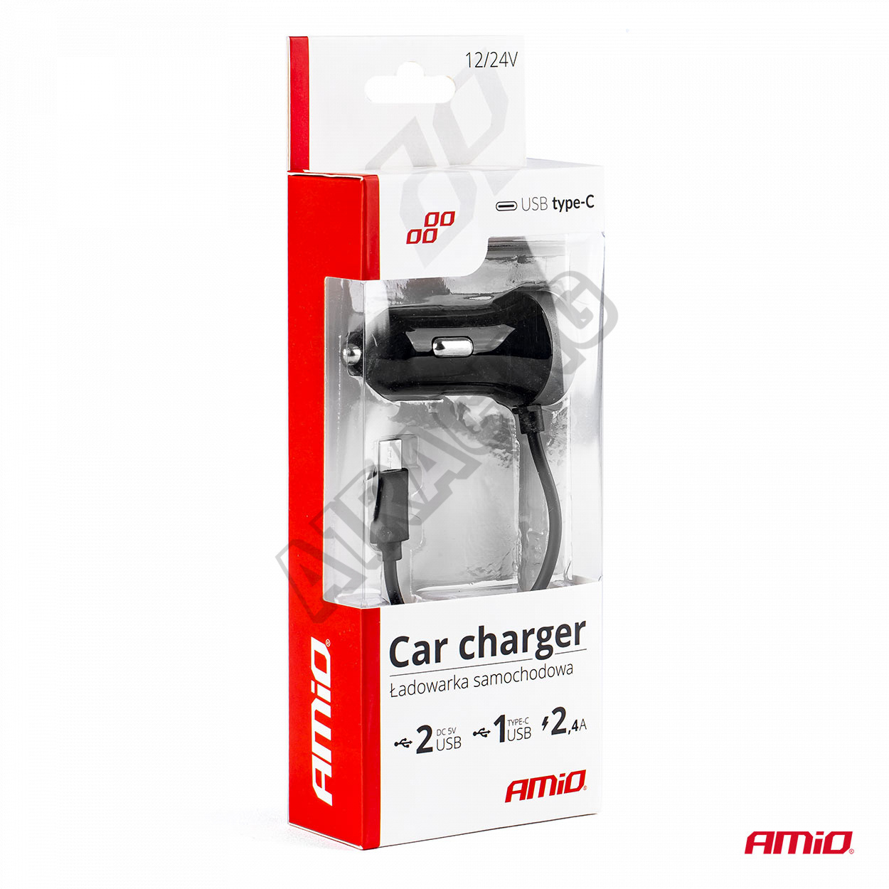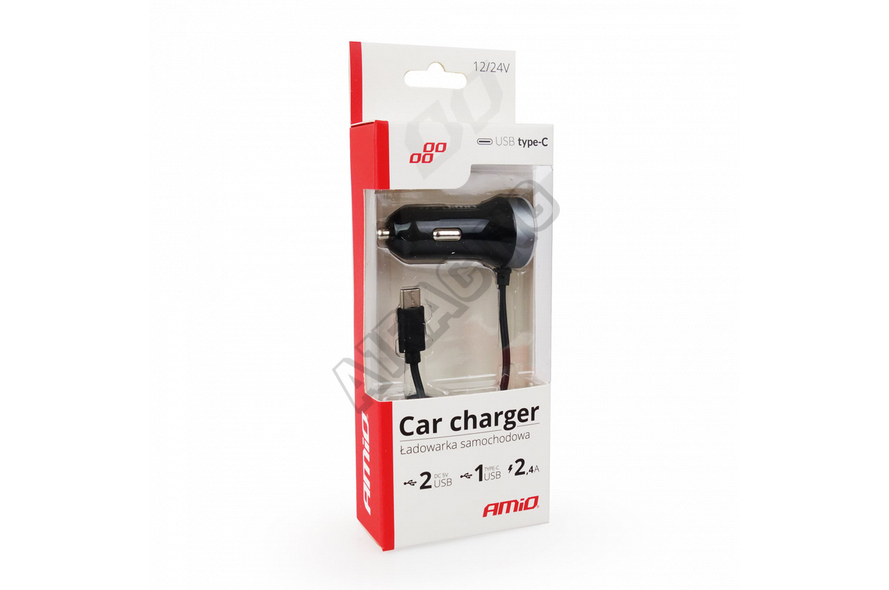 Automobilová nabíjačka 12/24V USB typ C + 2xUSB 2.4AKvalitná automobilová nabíjačka s 2 vstupmi USB