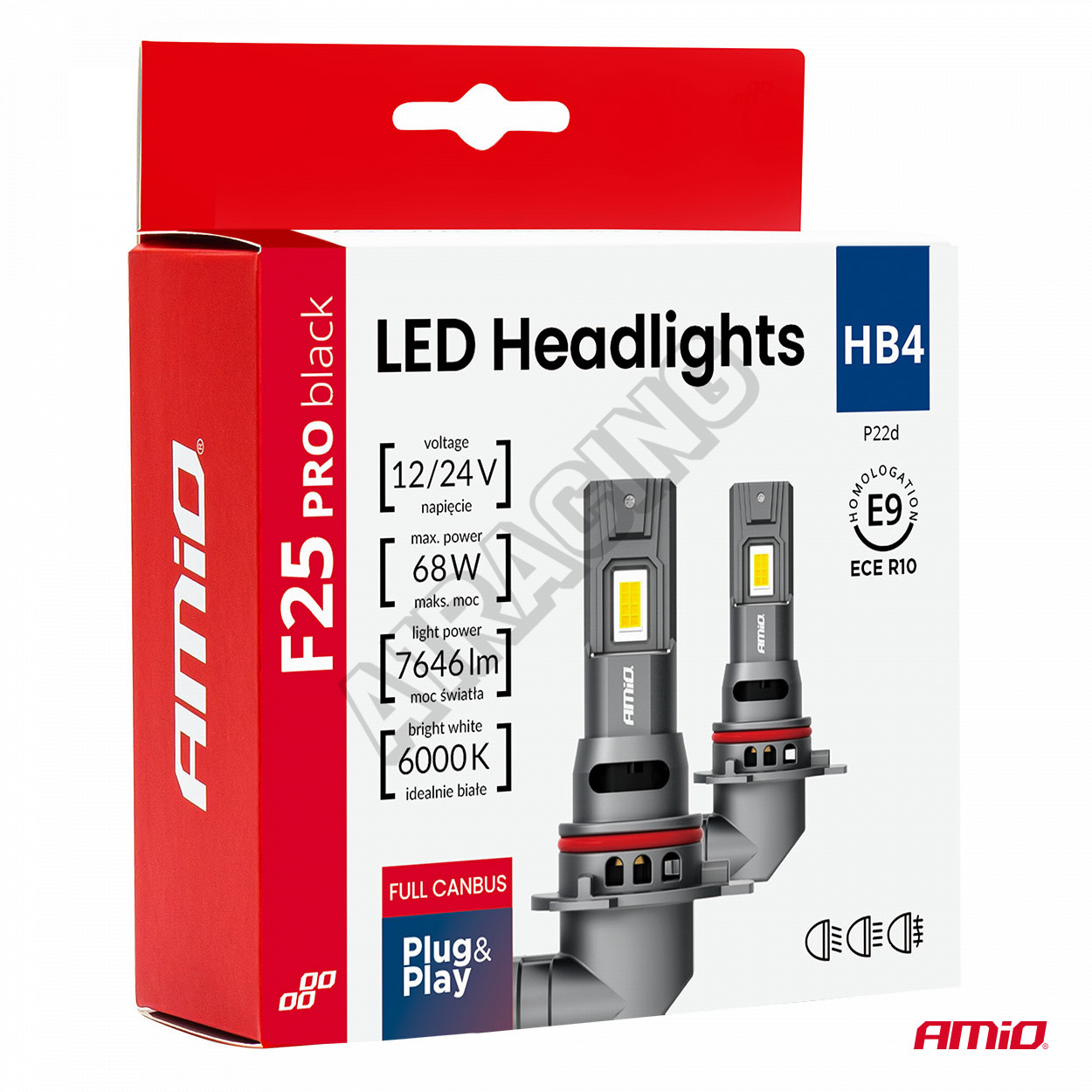 Autožiarovky LED séria F25 PRO BLACK FULL CANBUS HB4 68W 12V 24V AMIO-04723