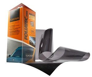 Samolepící stínící pruh na přední okno Foliatec varianta TOPSTRIPE. Léto? Slunce? Se stínícím pruhem Foliatec není problém. Účinná ochrana soukromí a ochrana před sluncem. Sluneční clona - pruh na přením skle v různých barevných provedeních - klasický tvar a funkce. Stínící pruh na přední okno Foliatec varianta TOPSTRIPE je rychlé a levné řešení. - ideální proti oslnění - univerzální velikost pro všechny vozy - snadná instalace - samolepící - nůž na úpravu velikosti je součástí balení - homologace TÜV (TÜV certifikát přiložen)