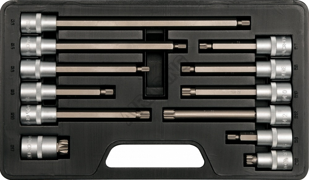 Súprava kvalitných zástrčných predĺžených kľúčov XZN s bitom pevne spojeným s hlavicou so štvorhrano