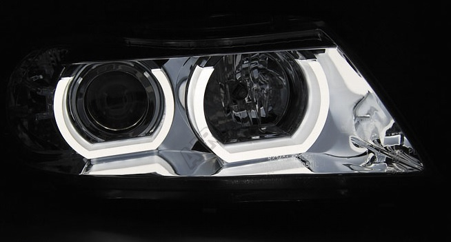 BMW E90, E91 03.2005-08.2008 predné číre svetlá 3D U-Type chrome HID (LPBMI5) Svetlá majú homologiz
