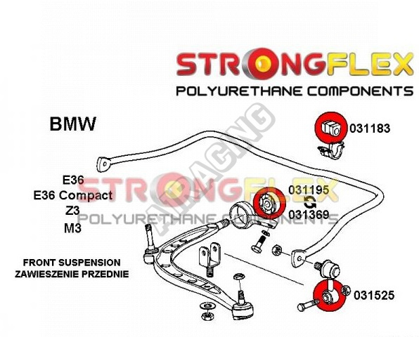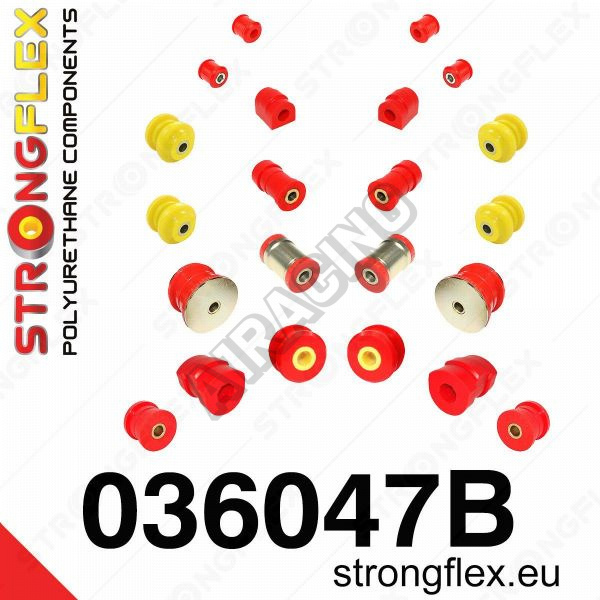 BMW rad 3 (E36) StrongFlex zostava silentblokov pre prednú a zadnú nápravu 24 ks obsahuje: