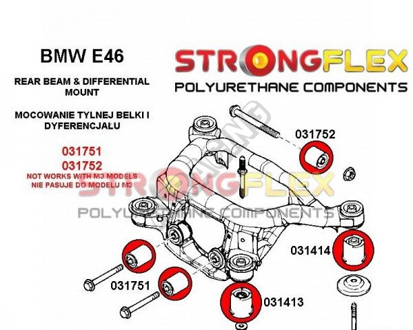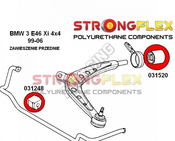 BMW rad 3 (E46) StrongFlex Sport (tvrdosť 90ShA) kompletná zostava silentblokov na celé auto obsahuje :