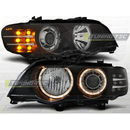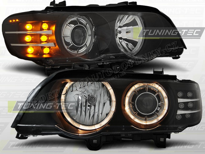 BMW X5 E53 09.1999-10.2003 predné číre svetlá Angel Eyes Black Led Indicator Xenon (LPBM88)