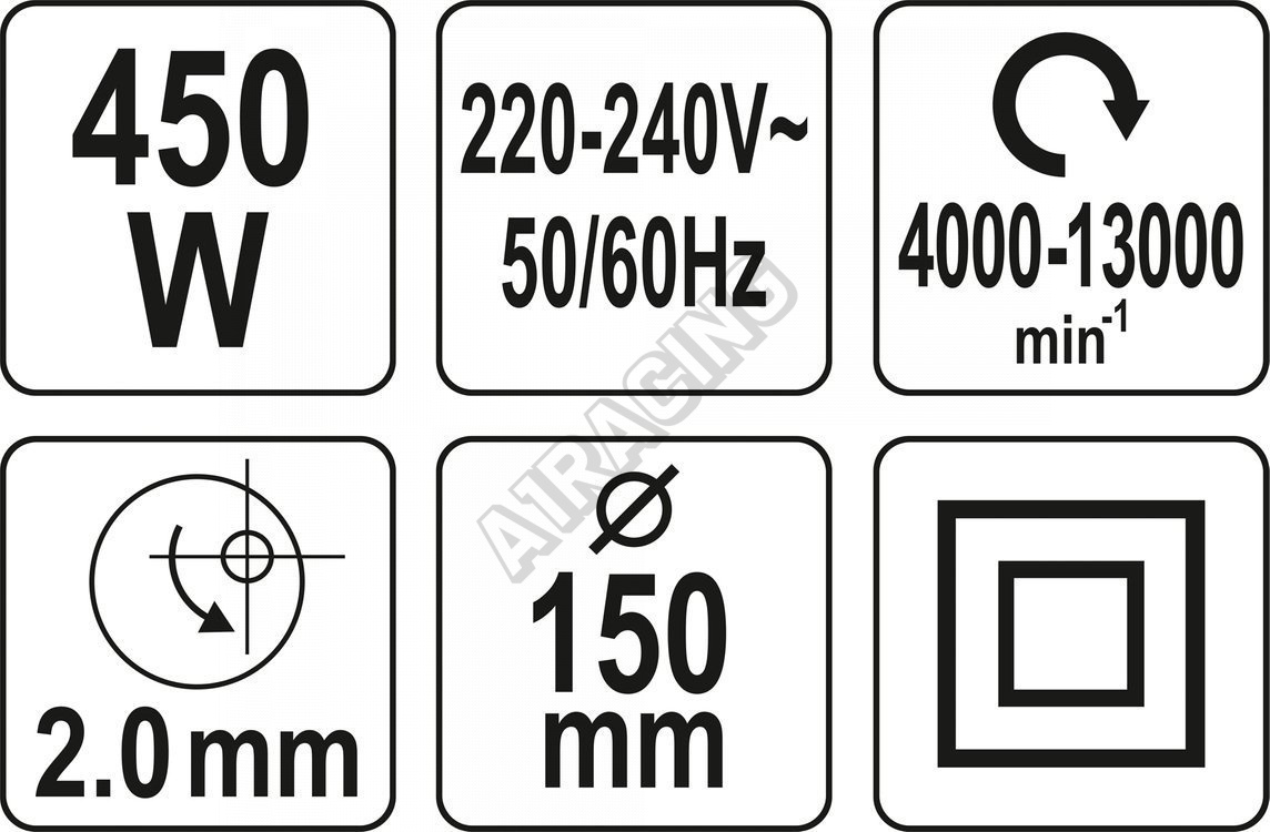 Výkonná brúska (450W) v kombinácii s variabilnou rýchlosťou otáčania je optimálnou kombináciou pre prácu s drevom, odstraňovanie hrdze a náterov. Tanier s priemerom 150 mm umožňuje získať hladký povrch a napríklad rýchlo vyčistiť drevenú konštrukciu s odlupujúcou sa vrstvou starého náteru.
