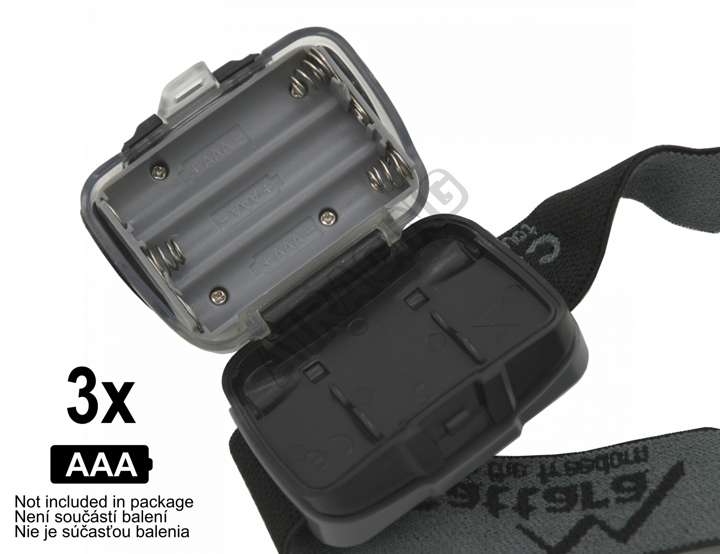 Napájení je řešeno třemi AAA bateriemi s výdrží 4 hodiny.