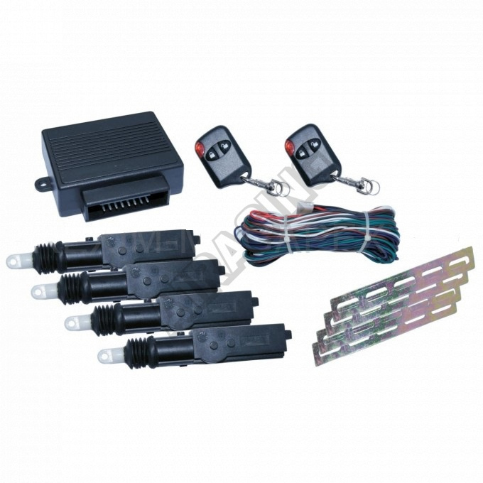 Centrální zamykání: Centrální zamykání na dálkové ovládání pro 4. dveře.Určeno pro 12V. Balení obsahuje: sadu táhel, spojovací materiál,kabeláž pro 4. dveře,2x pětivodičové servo, 2x dvouvodičové servo, modul 2x dálkové ovládání.