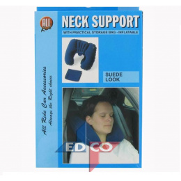 Je veľmi skladný, jednoducho sa len nafúkne a oprie za krk. Má veľmi príjemný semišový povrch. Modrý.