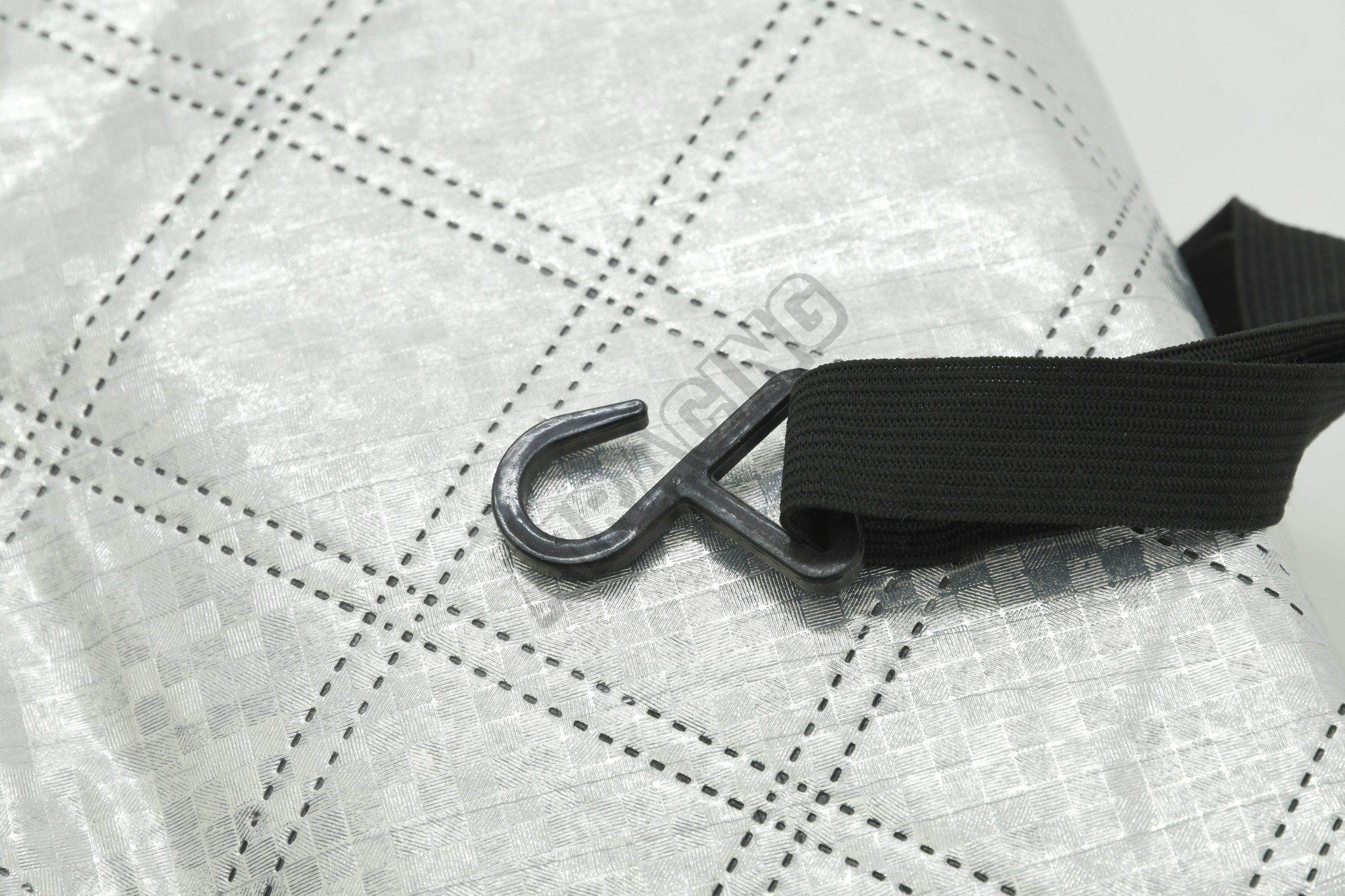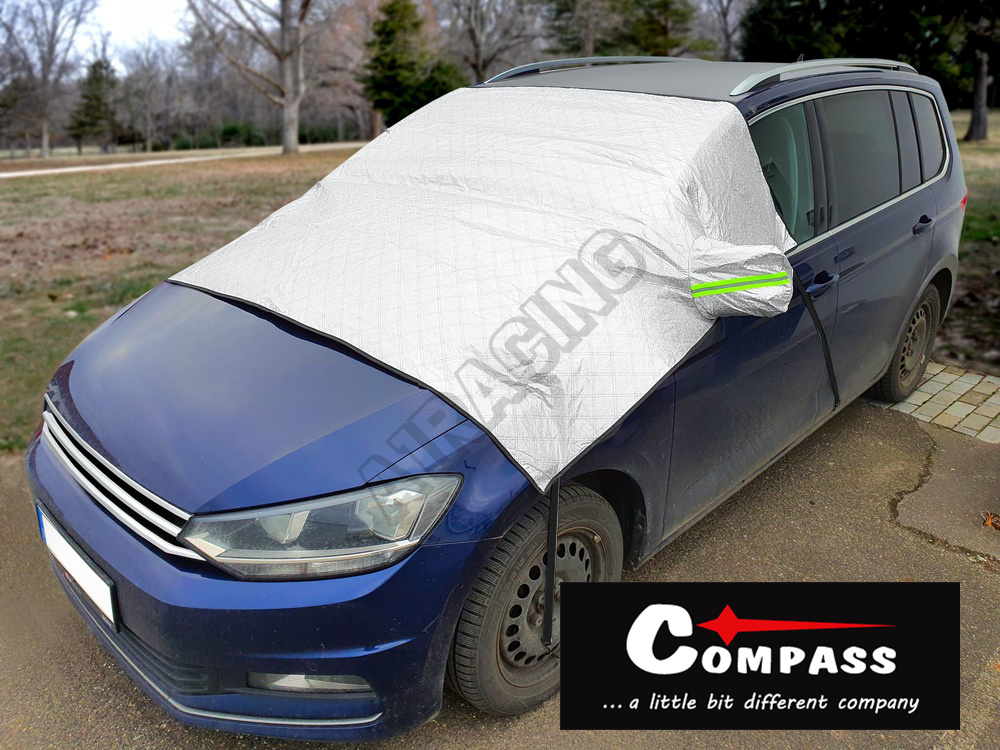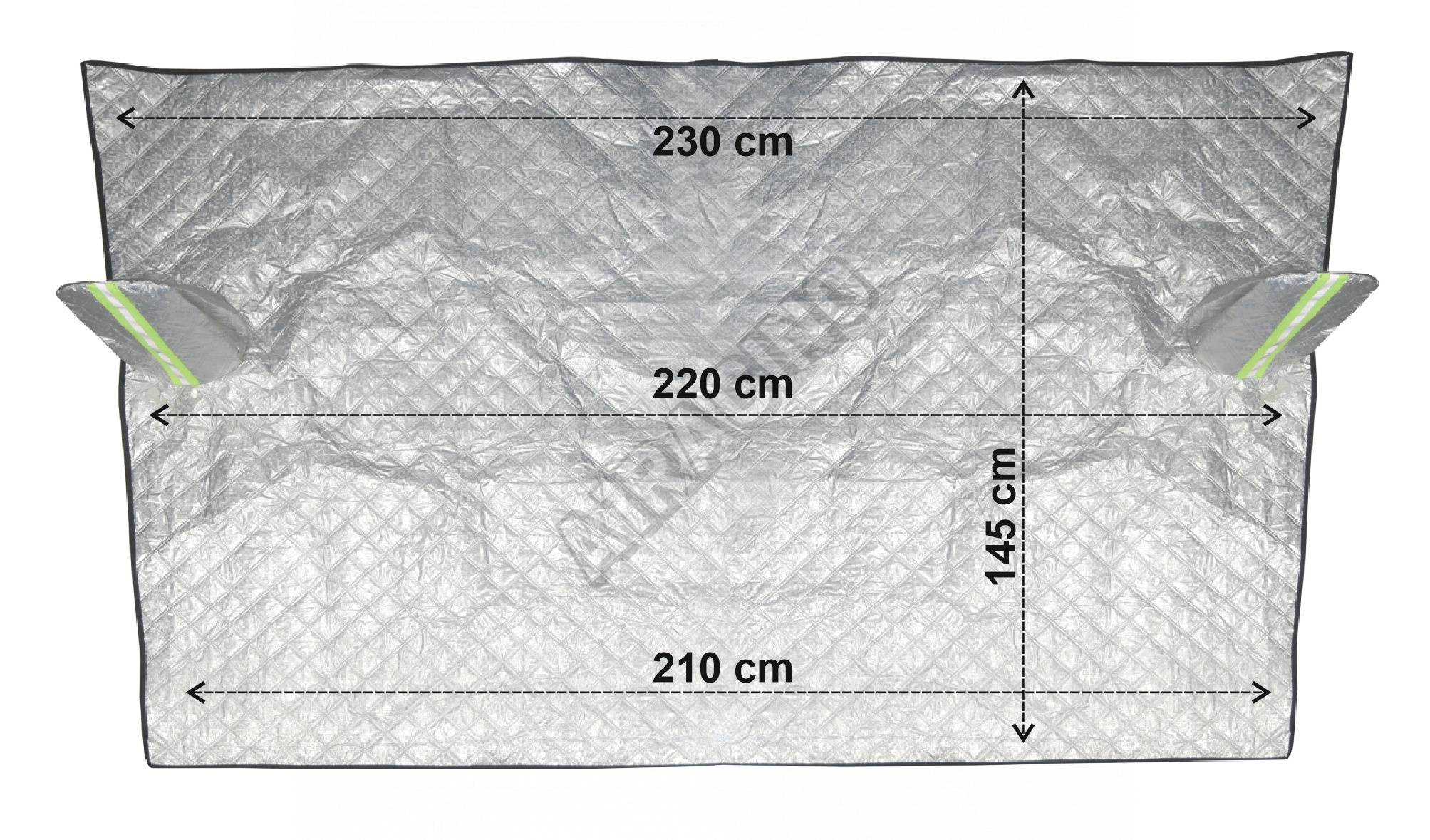 Upevnenie je riešené pomocou popruhov s háčikmi a umiestnením cez zrcátka automobilu. Plachta vďaka svojim rozmerom zakrýva celé čelné sklo vrátane stěračů a navyše chráni i zrcátka vozu.