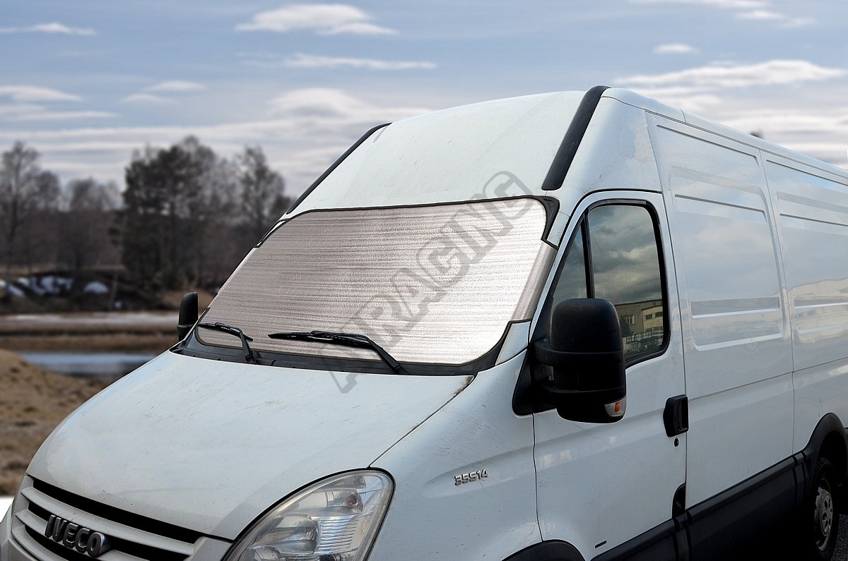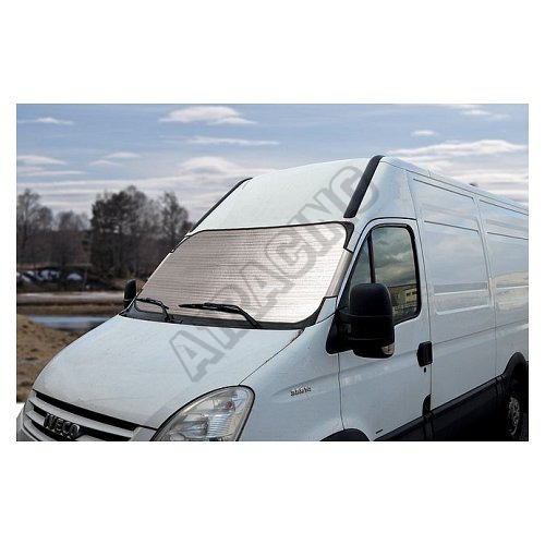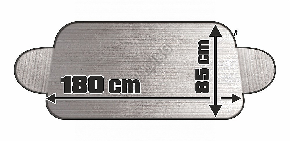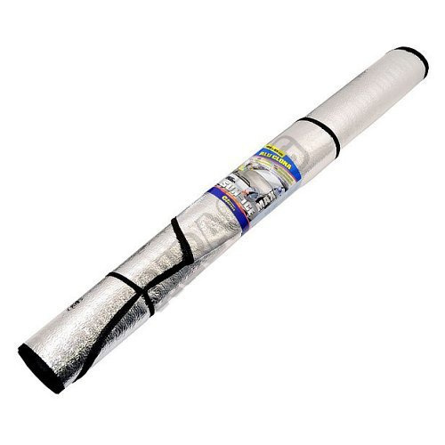 Clona na predné okno s vrstvou hliníka, lichobežníkový tvar, veľkosť 180 x 85 cm - vhodné na dodávky a väčšie vozidlá. V lete dokonale obmedzí zvyšovanie teploty vo vozidle stojacom na slnku, v zime zabráni vzniku námrazy na čelnom skle stojaceho automobilu.
