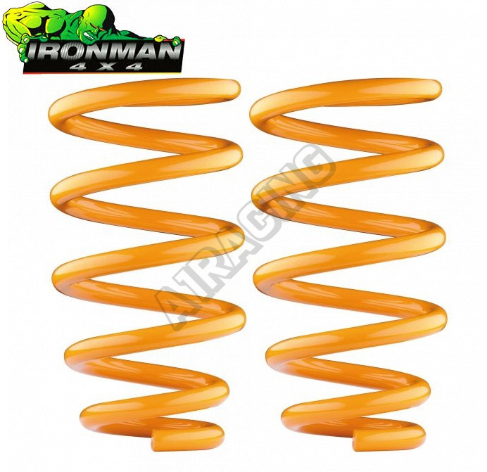 Kvalitné zosilnené predné a zadné pružiny kutovního austrálskeho výrobcu Ironman 4x4 vyrobené zo špeciálnej ocele točené za studena. Týmto spôsobom decentne zdvihnete podvozok vášho auta bez žiadnych ďalších úprav, kde len pružiny vymeníte za originálny. Svetlá výška auta po inštalácii sa zdvihne + 40 mm. Predná náprava je posilnená navyše o 50 a zadný až + 200 kg, Auto po tejto inštalácii zvýšených pružín IRONMAN4X4 sneží väčšie zaťaženie a pritom nestratí nič zo svojho komfortu. Cena je vždy za 1 sadu 2 kusov pružín na prednej alebo zadnú nápravu.