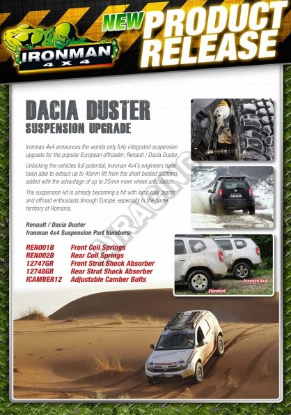 Recenzia k produktu Dacia Duster 2010+ zvýšené pružiny Ironman 4X4 predné (+ 40mm / +50 kg)