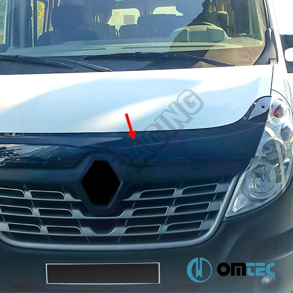 Pozor: Nič sa nemusí vŕtať. Všetko sa inštaluje na pôvodné uchytenie z vnútornej strany kapoty. V hornej časti je priehľadná fólia, ktorá pred použitím sa zloží dole.