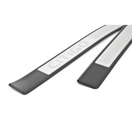 Originál dekoratívne prahy chráni karosériu pred poškodením, nečistotami, navyše zvyšujú atraktivitu vozidla. Lišty sú vyrobené z odolného materiálu TPU / ABS a vnútri majú vlisovanou vložku z ušľachtilej ocele s nápisom Citigo. Lišty sa dodávajú v sade po dvoch kusoch - pre ľavú aj pravú stranu vozidla.
