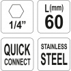 Celkové rozměry držáku z nerezové oceli, jsou 60 mm a stopka 1/4".