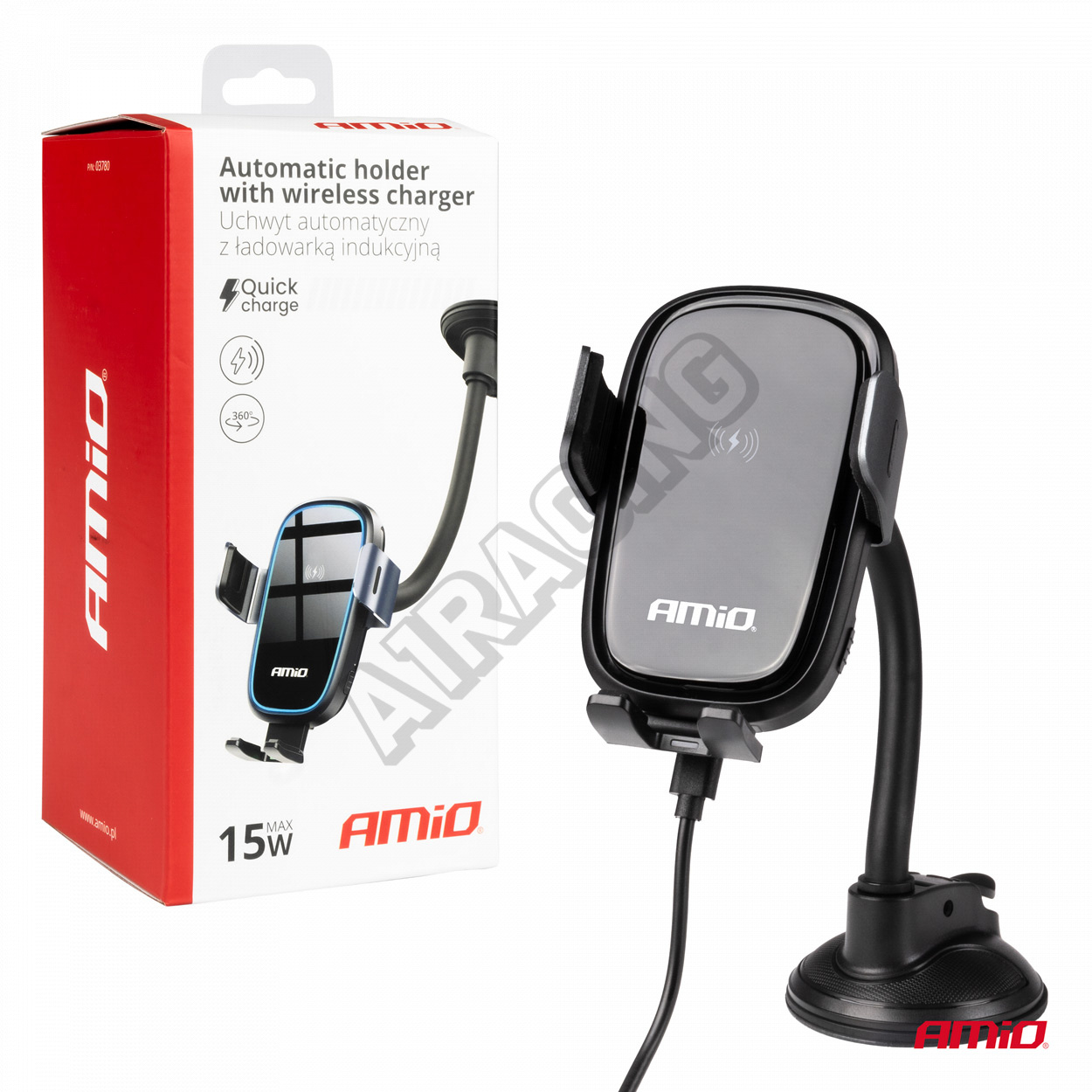 Inovatívny a elegantný držiak firmy AMiO s indukčnou nabíjačkou 15W. Tento pokročilý držiak má nastaviteľné rameno s opakovane použiteľnou prísavkou a možnosťou otáčania.