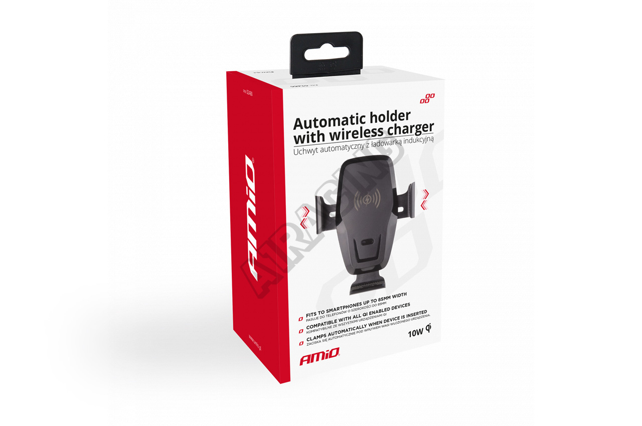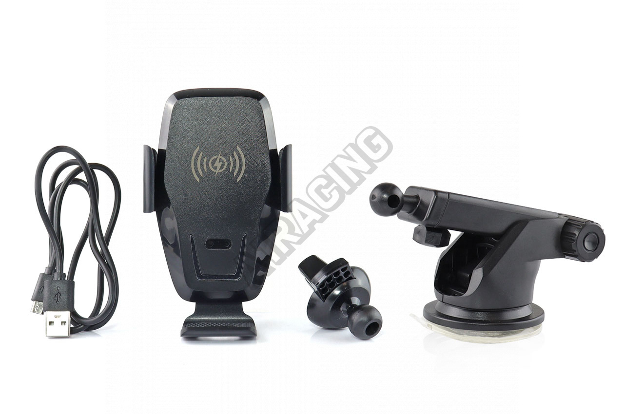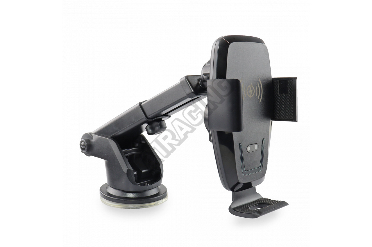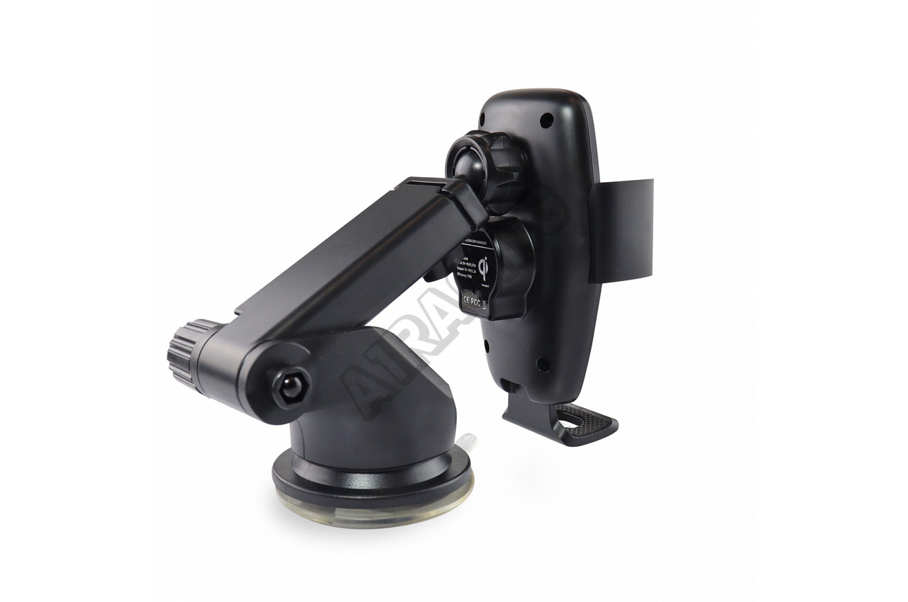 Automaticky uzamykateľný držiak so senzorom priblíženia a silnou indukčnou nabíjačkou. Možnosť montáže na sklo pomocou priloženého nastaviteľného ramena s prísavkou.