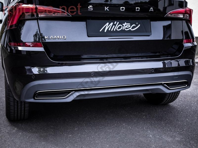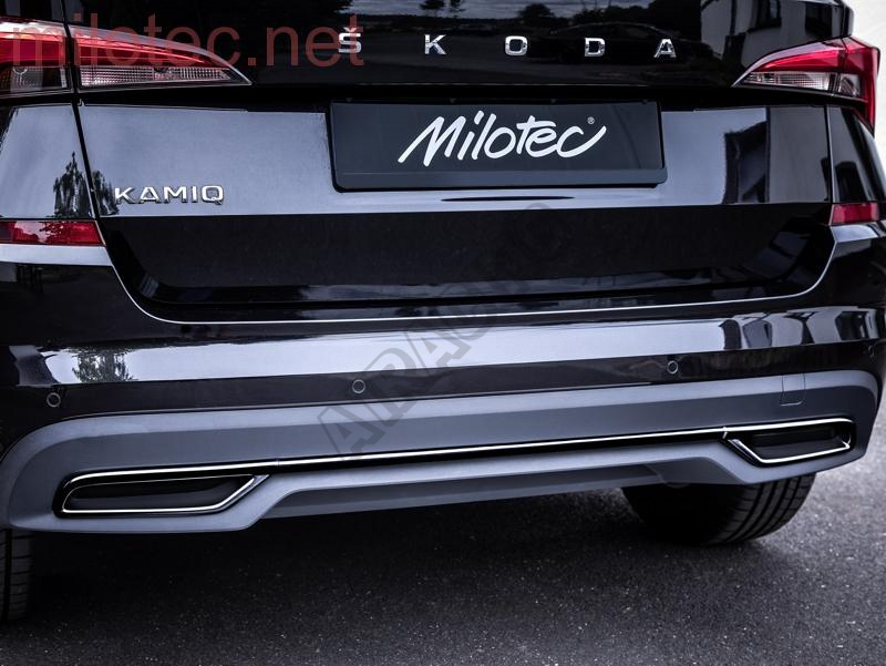 Dummy koncovky výfuku s dekor lištou nárazníka, čierny lesklý "klavírlak", Škoda Kamiq 2019+