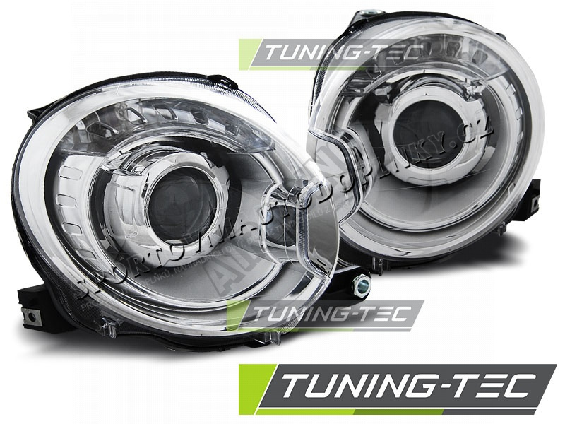 Fiat 500 2007- predné číre svetlá projektor chrome (LPFI19) Světla mají homologaci pro běžný provoz,