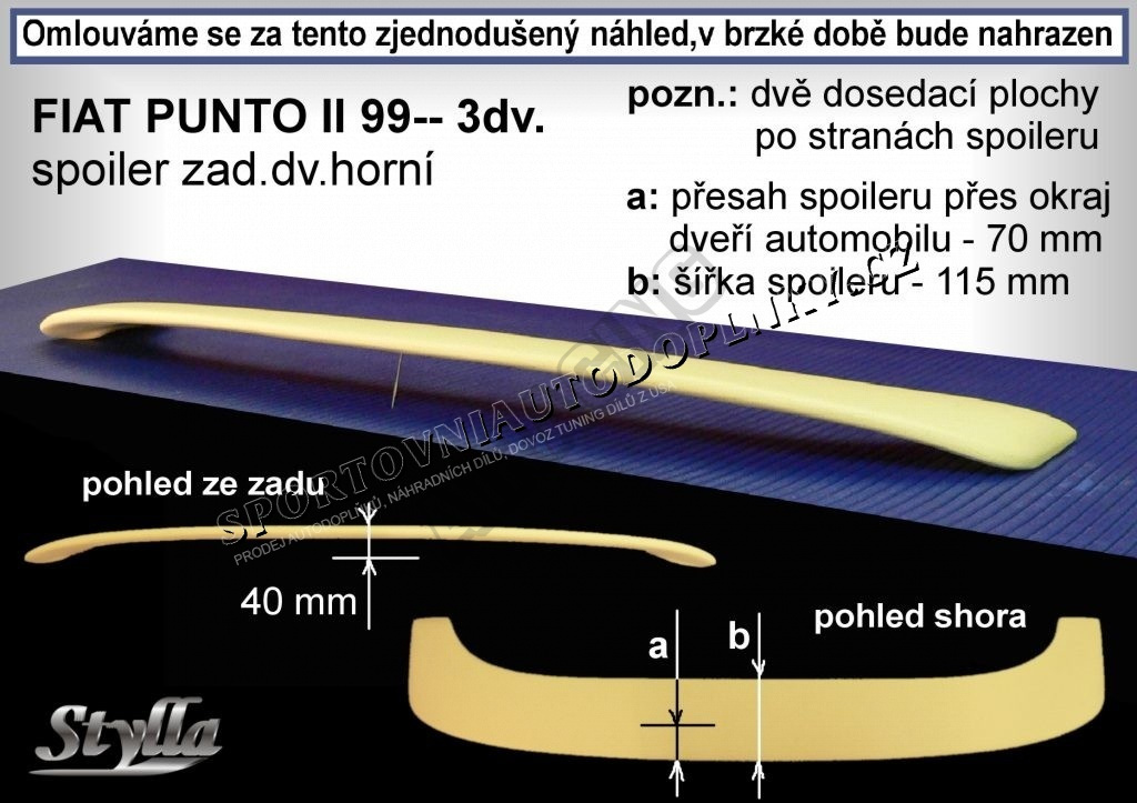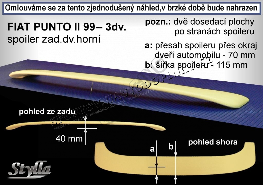Fiat Punto II 3D (99+) spoiler zadných dverí horný (EÚ homologácia)