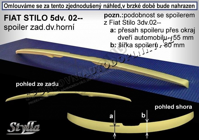 Fiat Stilo 5D (02+) spoiler zadných dverí horný