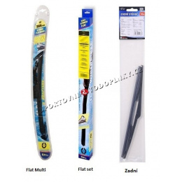 Stěrače FLAT SET (sada 2 ks na celé auto). Vysoce kvalitní pružný člen plochého stěrače zajišťuje stejnoměrný tlak grafitového břitu v celé jeho délce, což zamezuje rozmazávání nečistot a vytváření pruhů.
