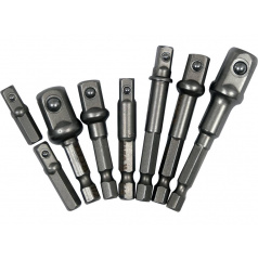 Sada adaptérů do vrtačky HEX 1/4" pro použití nástavců. Sada se skládá z 8 adaptérů 1/4", 3/8" a 1/2