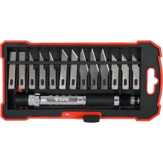 Súprava 16 dielov presných nožov v praktickom balení. Vyrobené z odolnej nástrojovej ocele SK5 Obsah