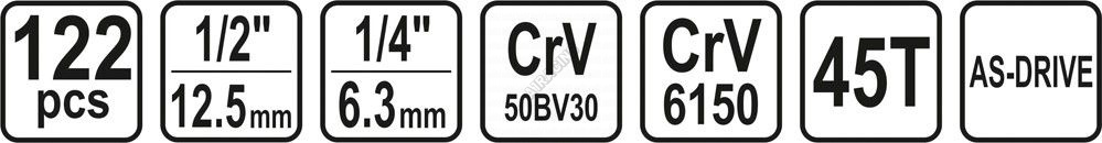 | 15x | nástavec 1/2": 12; 13; 14; 15; 16; 17; 18; 19; 20; 21; 22; 24; 27; 30; 32 mm |