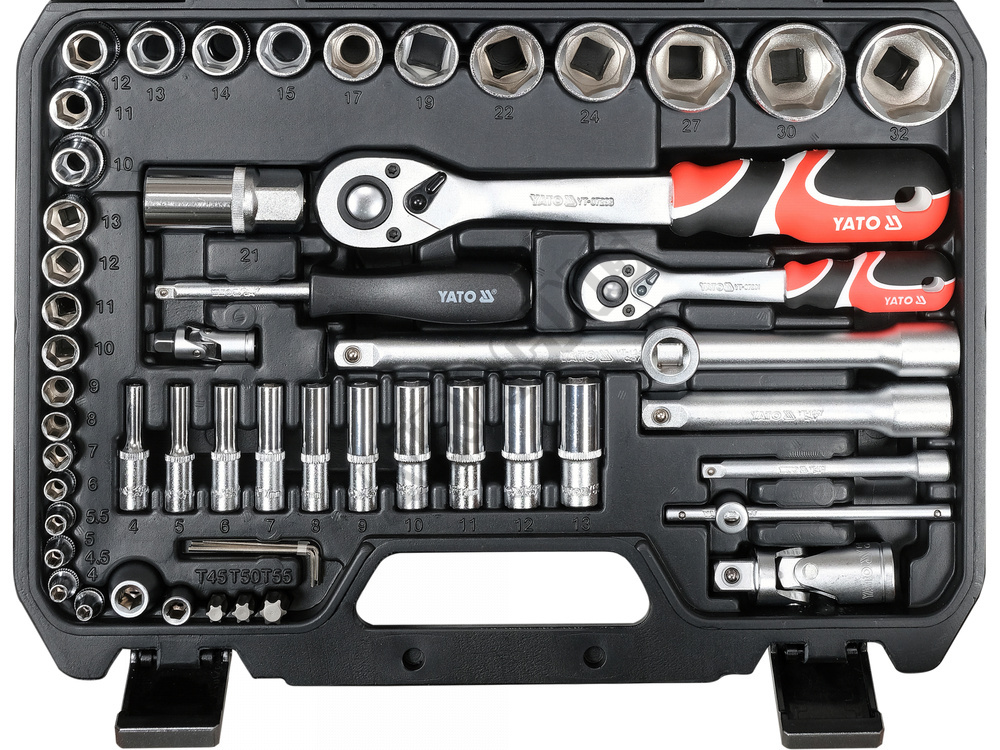 Gola sada 1/2", 1/4" obsahuje 93ks: nástavců, prodlužovacích nástavců, ráčny s plastovou rukojetí a