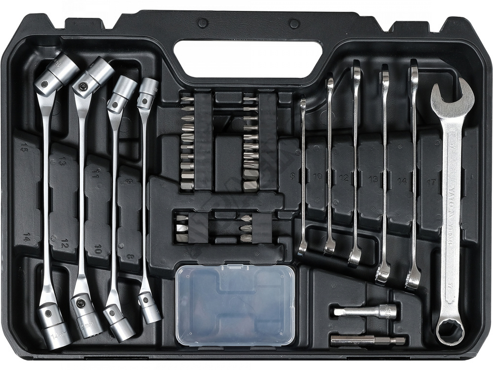 Gola sada 1/2", 1/4" obsahuje 93ks: nástavců, prodlužovacích nástavců, ráčny s plastovou rukojetí a 72 zubým jemným chodem, kloubové nástavce, očkoploché klíče, imbusové klíče a další příslušenství. Vyrobené z kvalitní chromvanadiové oceli CrMo440, CrV6150 a CrV50BV30, S2 s funkcí AS-DRIVE.