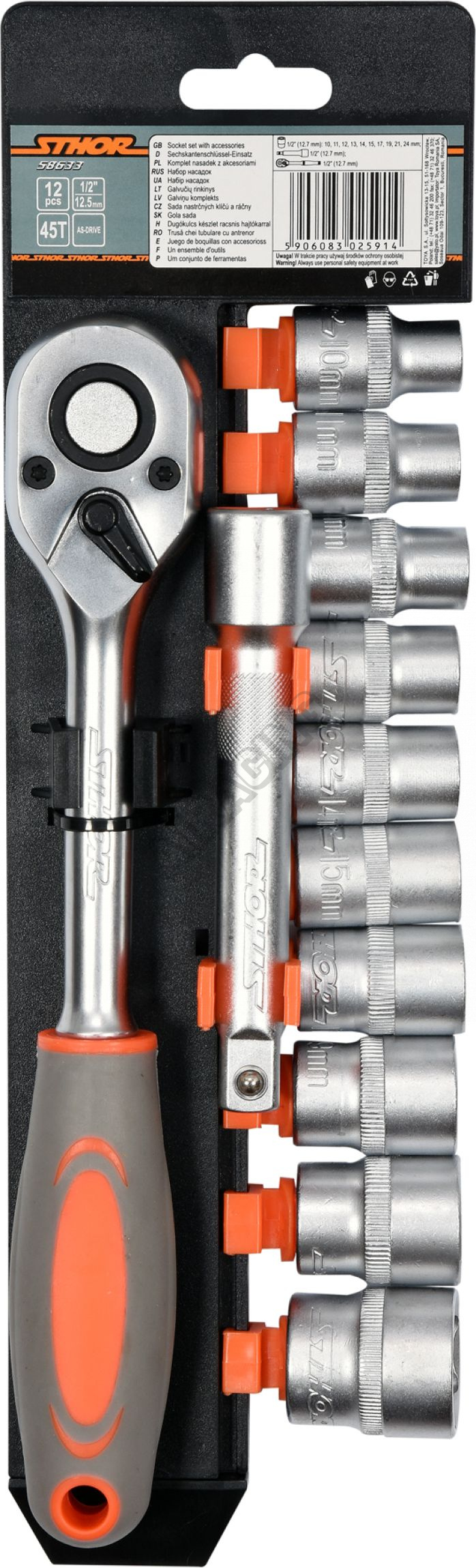 Kompletná sada STHOR 1/2 "obsahuje 12ks: nástavce a račňu s plastovou rukoväťou. Vyrobené z kvalitnej ocele sfunkciou AS-DRIVE.
