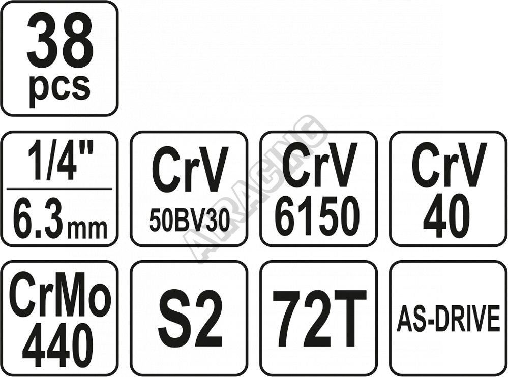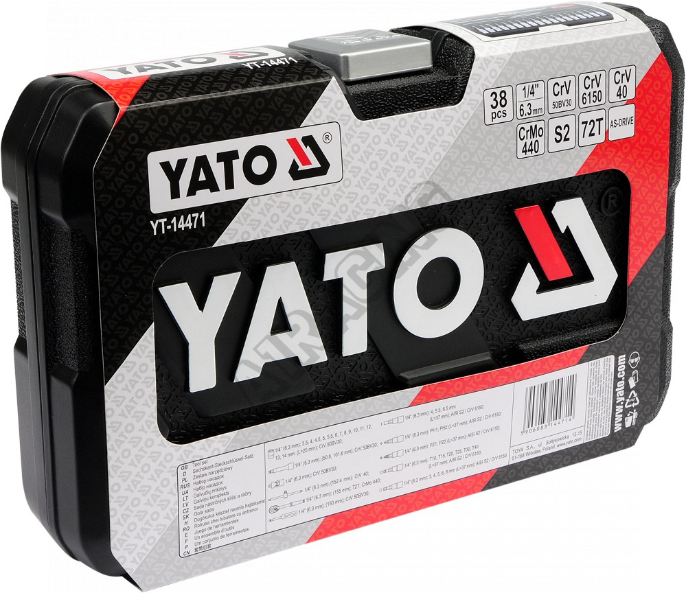 Gola sada 1/4" XS obsahuje 38ks: nástavců, prodlužovacích nástavců, ráčnu s plastovou rukojetí a další příslušenství. Vyrobené z kvalitní oceli CrV50BV30, CrV40, CrV6150, CrMo440 a S2 s funkcí AS-DRIVE. Ráčna má jemný 72 zubý chod.