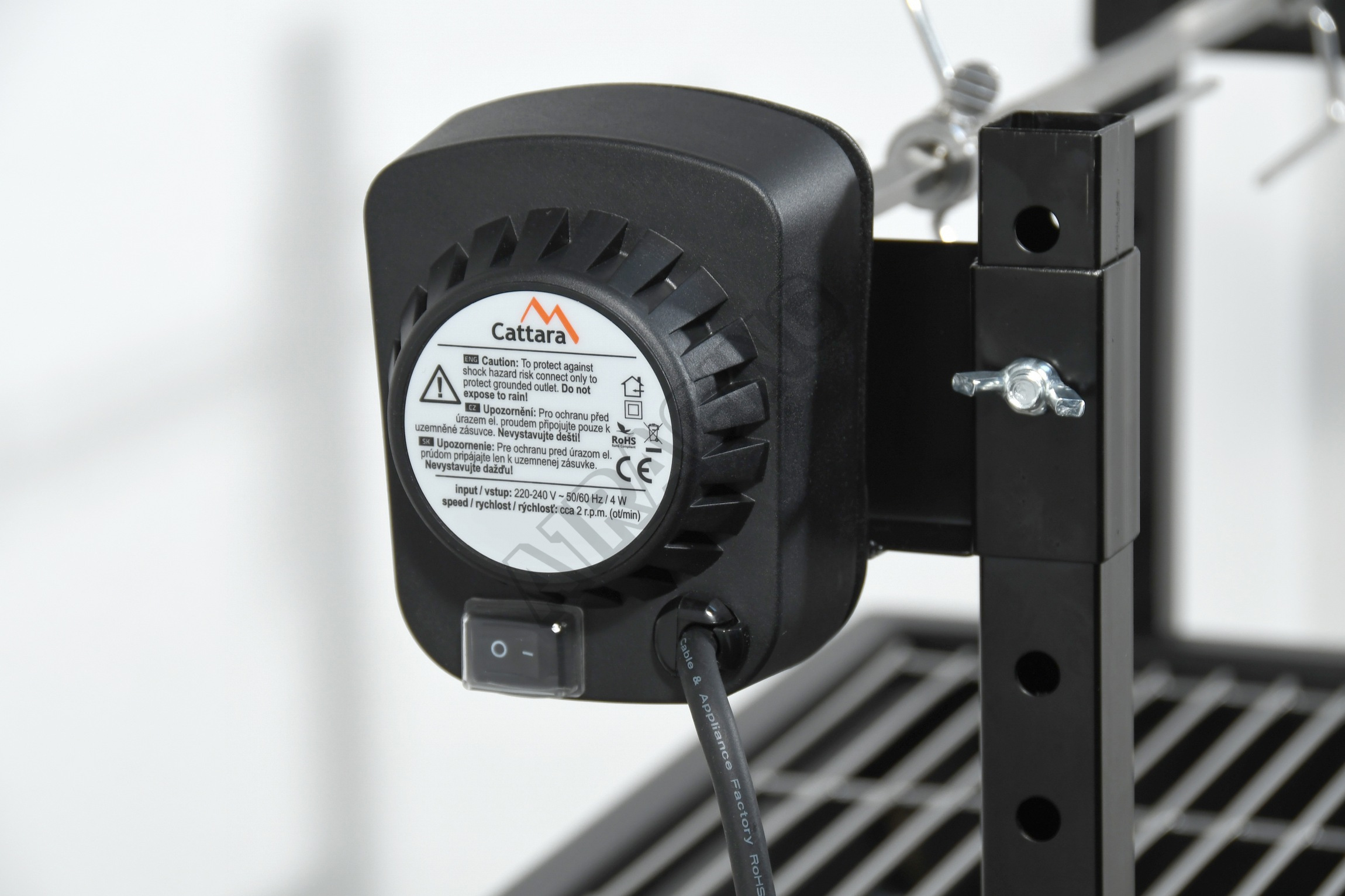 Gril je doplněn výkonným motorem s napájením na 230V pro otáčení pokrmů při rychlosti 2 ot-/min. Na vidlice - motor je možné naložit až 8 kg pokrmů.