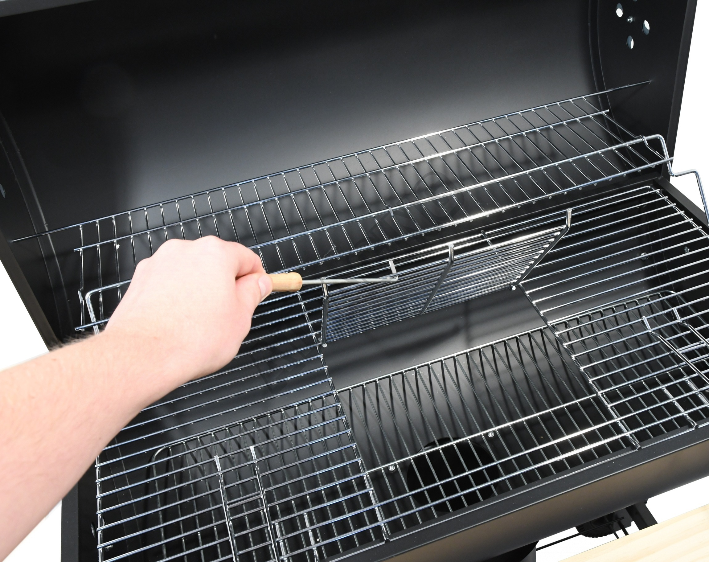 Tento gril je vybaven chromovaným roštem, regulací cirkulace vzduchu uvnitř grilu, díky které lze regulovat grilování při zavřeném víku. Ve spodní části je umístěn vyjímatelný popelník, který umožňuje snadné vysypání popela.