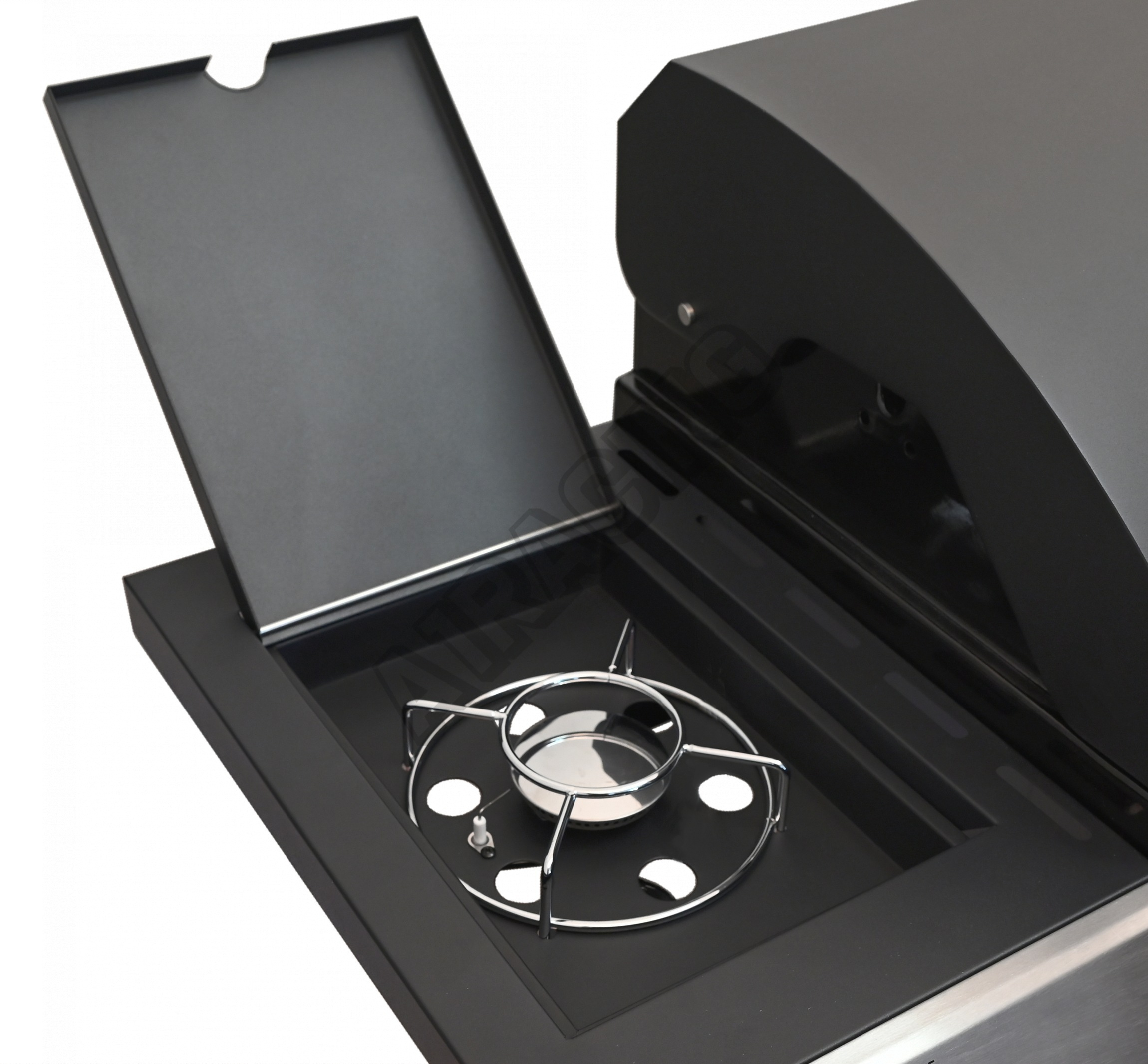 Gril je dále opatřen několika odkládacími prostory včetně boční poličky. Dále je gril vybaven přídavným bočním vařičem se samostatnou regulací a piezo zapalováním. Součástí kompletu je i spojovací hadice k plynové lahvi a redukční ventil.
