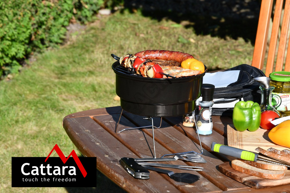 Kompaktní, přenosný gril s taškou BOSA, hodící se na cestách, do kempu a pro další outdoor využití.