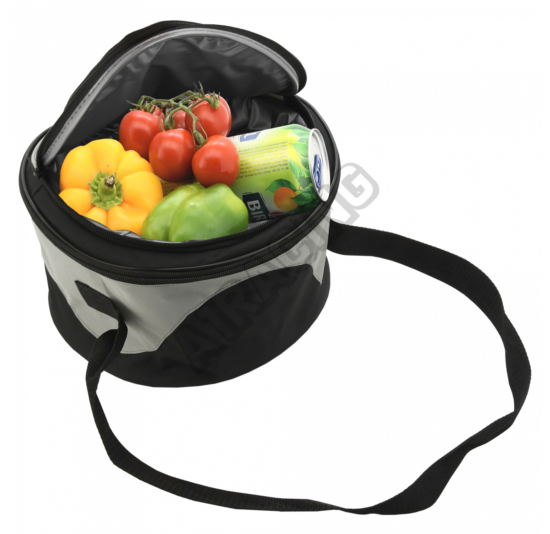 Pro snadné přenášení je složený gril umístěn do praktické tašky s popruhem. Taška je opatřena izotermickou kapsou na potraviny a navíc menší sítěnou kapsičku na drobnosti. Přepravní rozměry 30 x 17 x 30 cm.