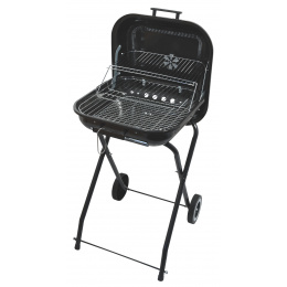 Konstrukce je vyrobena z kvalitního ocelového plechu se smaltovanou povrchovou úpravou. Madla jsou z odolného plastu a mají dostatečný prostor pro úchop. Mobilitu zajištují čtyři kovové nohy, doplněné o zpevňující rám ve spodní časti. Navíc je gril vybaven kolečky z plastu, která zaručují dostatečnou pohyblivost.