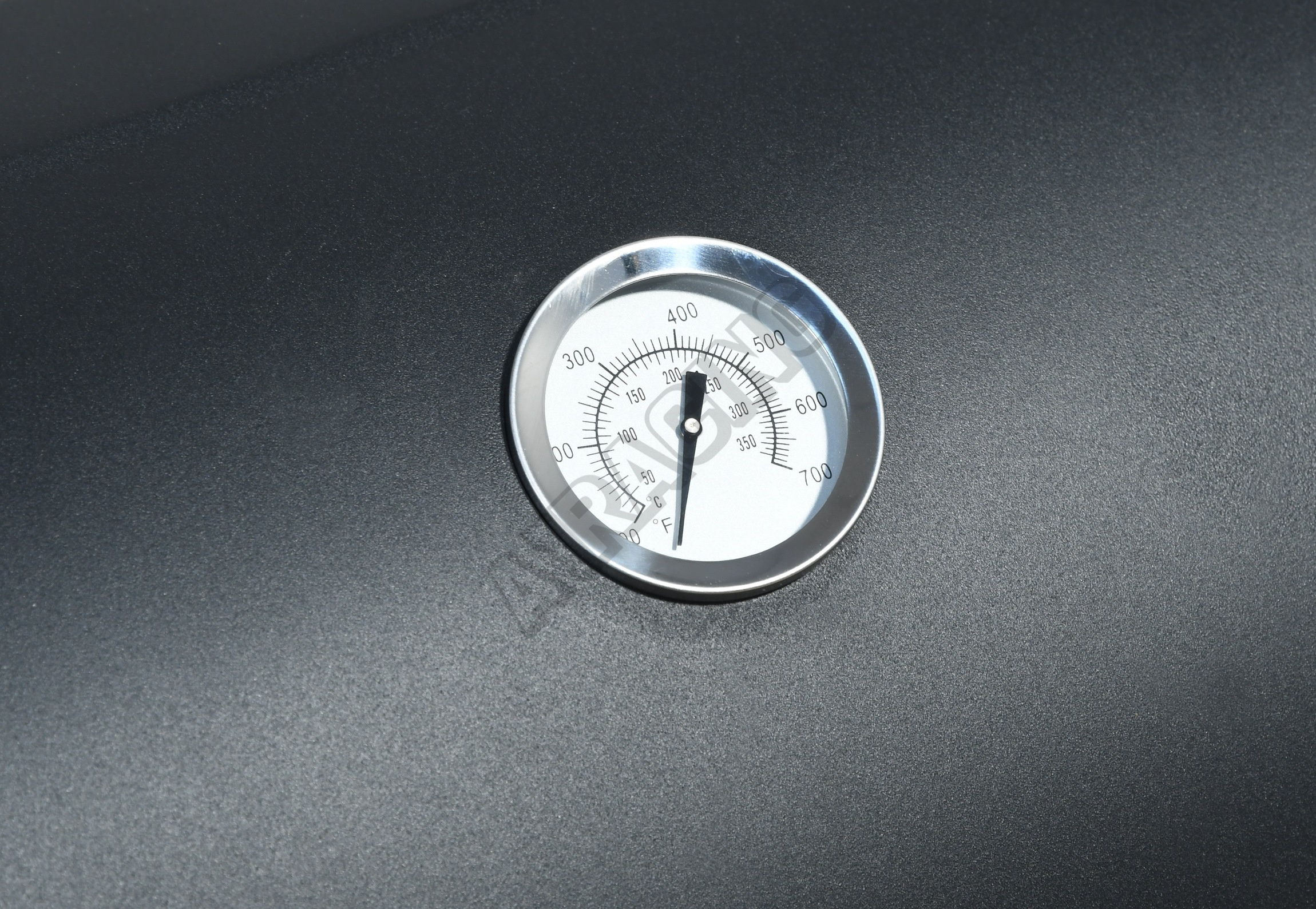 Víko je opatřené vestavěným teploměrem pro kontrolu teploty, rozměrná grilovací plocha s chromovanou mřížkou a praktická odkládací police v přední části grilu zajistí pohodlnou přípravu pochutin.