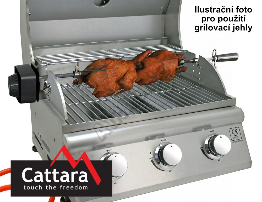 Díky perforacím na bocích konstrukce, je možné gril osadit motorem s jehlou (Cattara 13053) pro grilování kuřat a dalších pochutin.